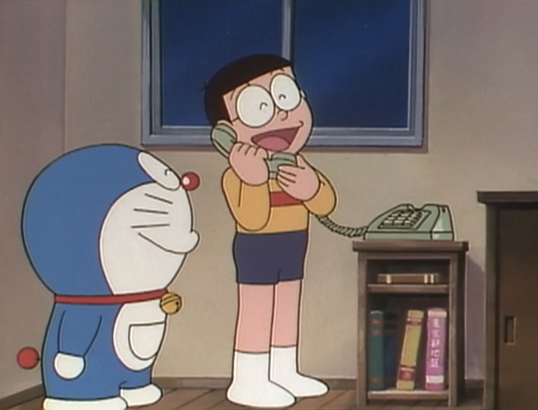 パパがブリキンホテルの予約をとったので、旅行に行ける事になったのび太は電話でみんなに自慢します。