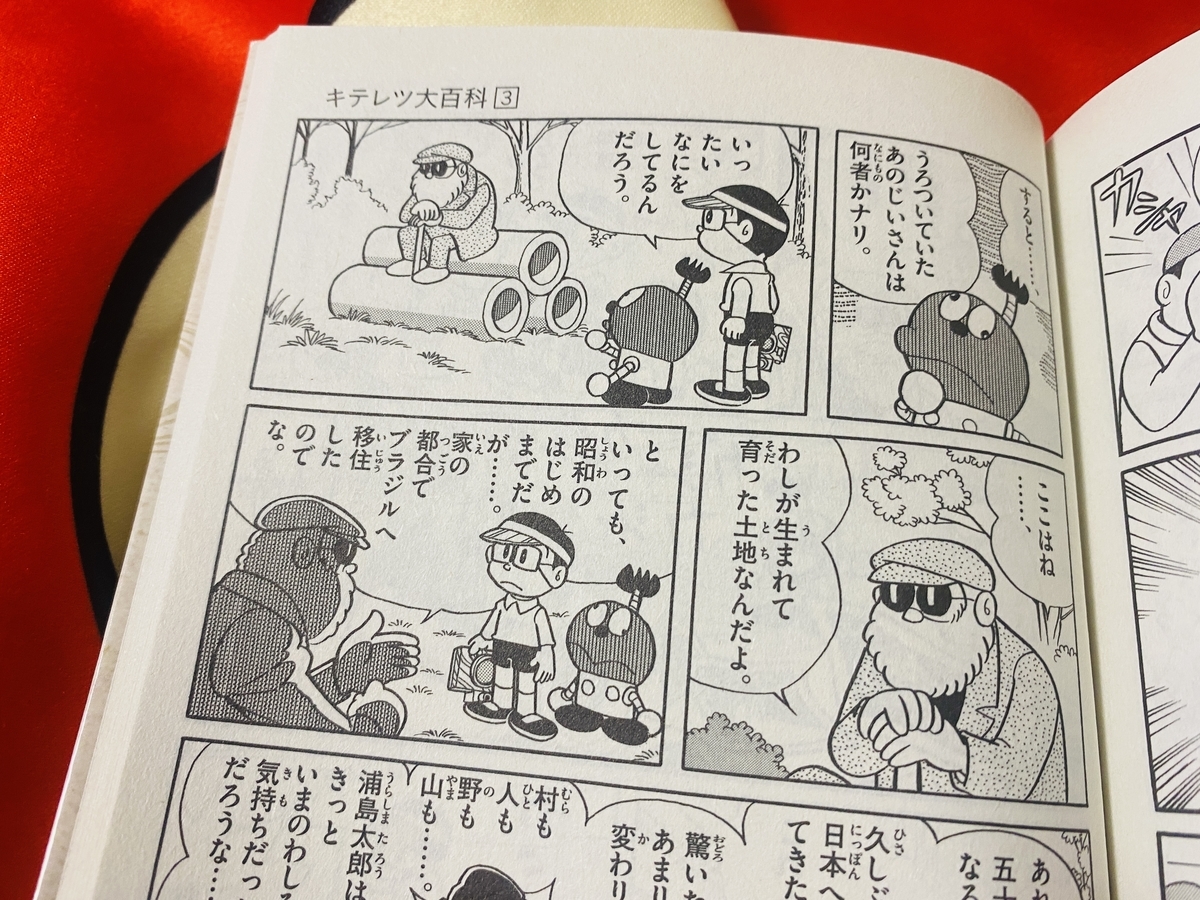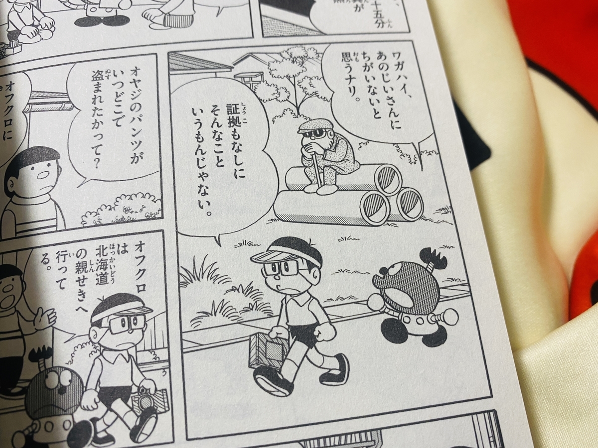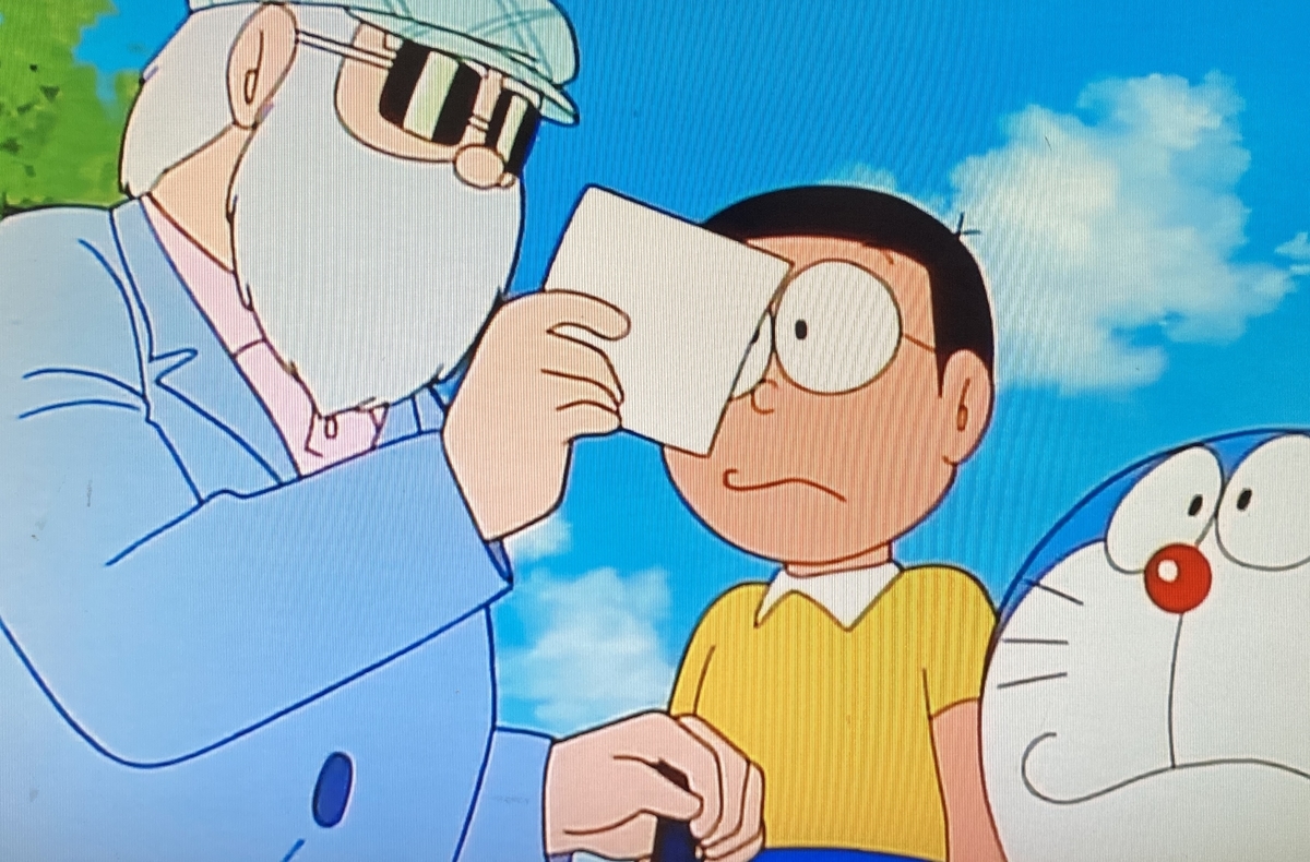 原作ではコロ助がおじさんを怪しんでいましたが、ドラえもんにストーリーを置き換えるとその役目はのび太なんですね。ドラえもんとキテレツ大百科はキャラクターの見た目な配置が似ていますが、この辺の違いは面白いなと感じました。