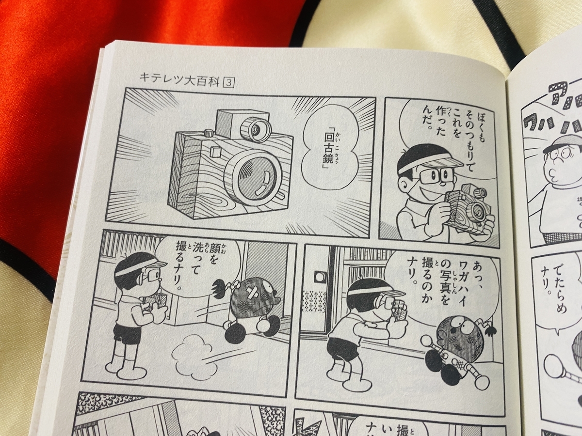 のび太が家の前で写真を撮ると過去の風景が出てくる辺りもキテレツ原作と一緒です。