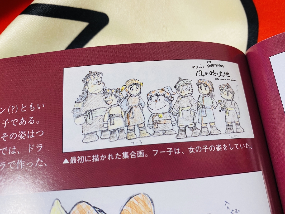ふしぎ風使いを作るにあたって芝山さんが最初に描いたドラえもんの絵も掲載されていました↓この時点で大まかな服装は決まっていたんですね!