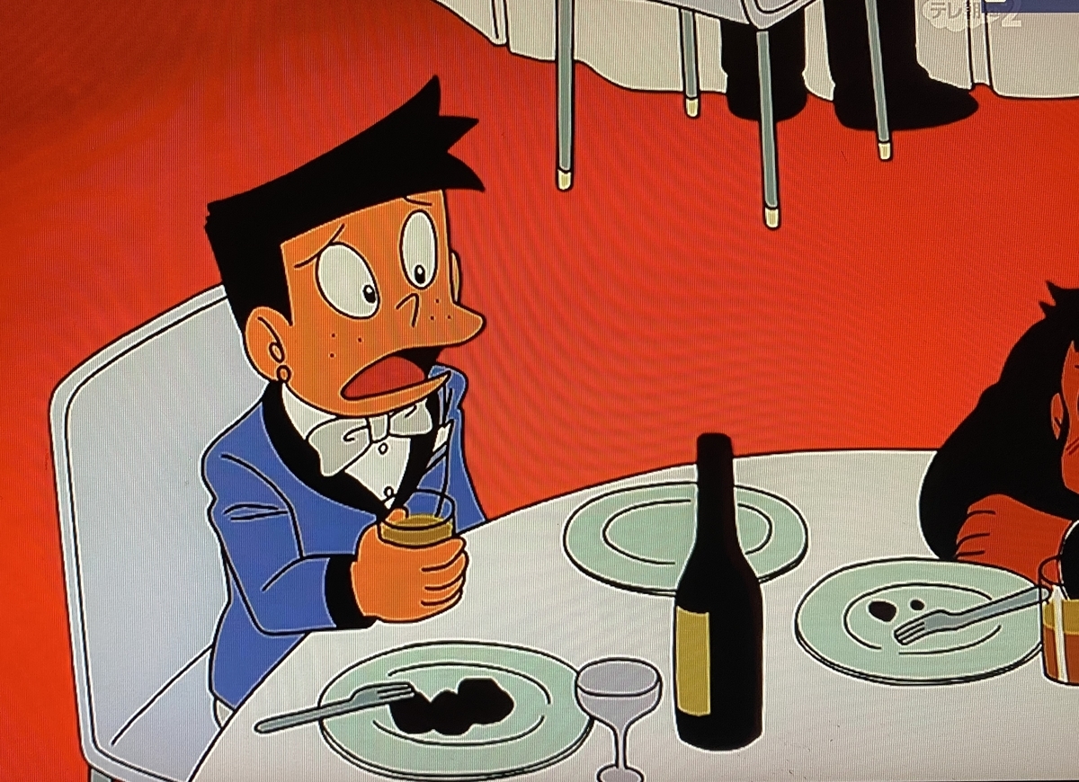 ショートカットの静香ちゃんやピアスをしたスネ夫。みんなの見た目は「のび太の結婚前夜」と近いですね。ジャイアンは飲み過ぎて潰れてしまってます(他人事とは思えない笑)