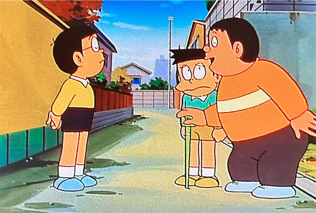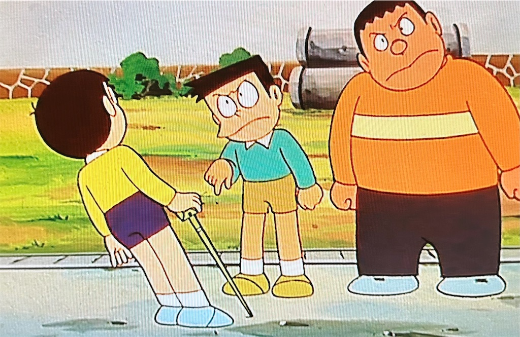 この道具を使ってのび太が町を練り歩くのですが、途中ジャイスネに絡まれます。