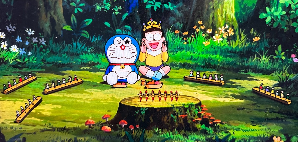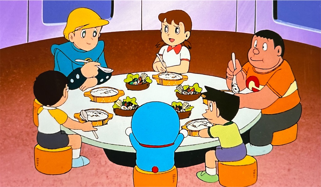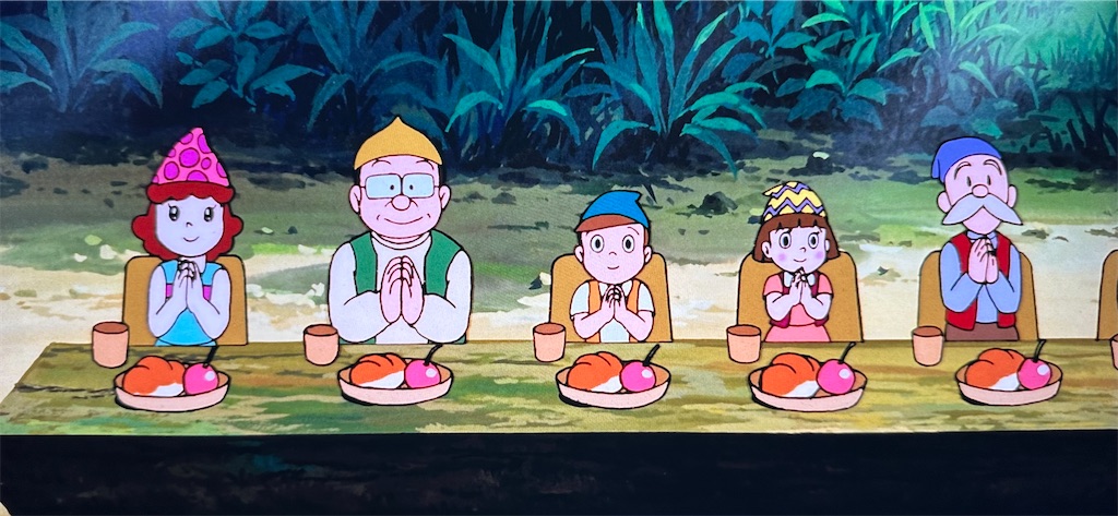 毎回色々な発見がある映画ドラえもんの食事シーン。今回は食器の大きさから小人族と大人族の普段からの交流を妄想する事ができました。信じるか信じないかはあなた次第。